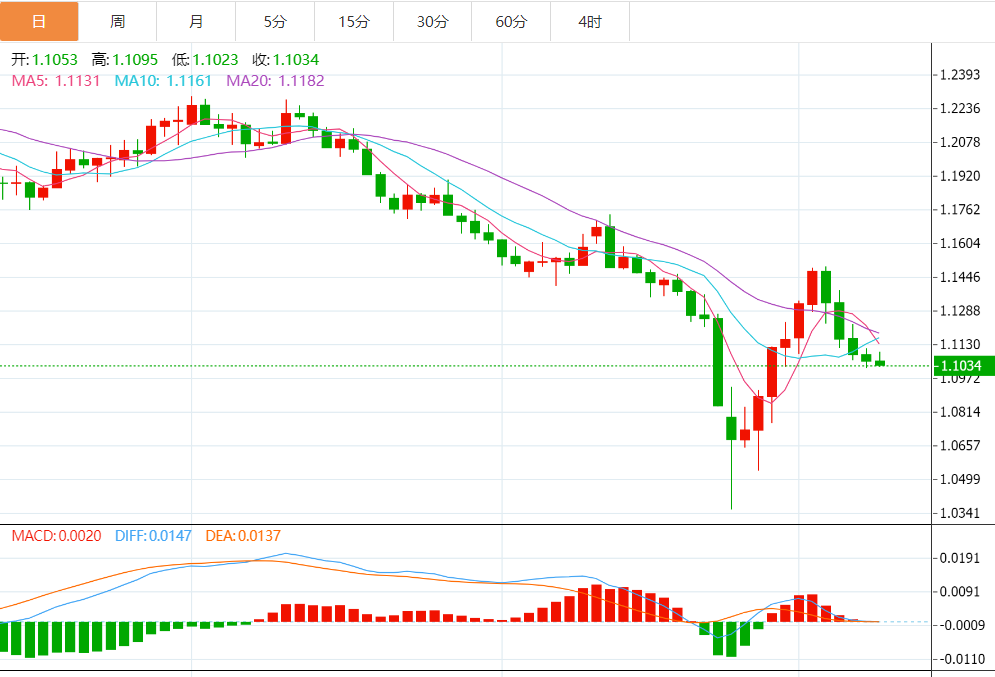 支撑位: 1.1020 1.1000 1.0950