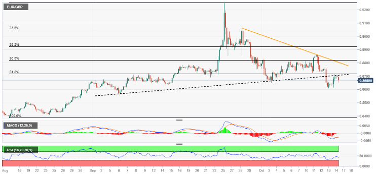 即便如此,13天的下跌趋势线和50%的斐波那契回档位(约0.8800)的收敛,似乎是欧元/英镑多头重新获得控制权之前的一个难题。