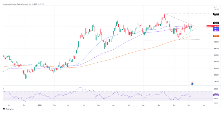 然而,如果多头走强,汇价收复10月21日高点95.74,那麽汇价将测试96.00心理水平。另外,如果市场情绪恶化,或日本央行推出新一轮干预,澳元兑日元将面临进一步抛压。