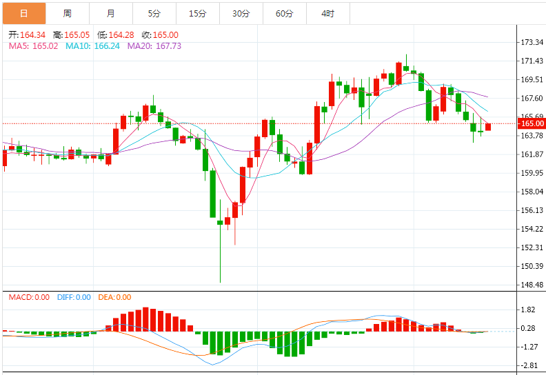 技术上,英镑兑日元维持在分别在164.00和164.90附近的100日移动均线和50日移动均线区间。
