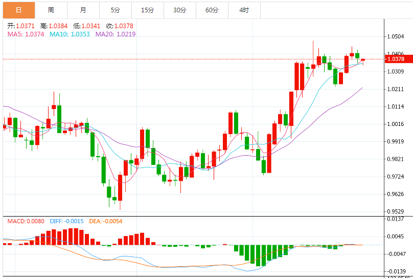技术上,日图在前高1.0480下方整理,略偏弱势,初步支持关注1.0350。4小时图在1.0450下方拉锯后今日亚市早盘跳空低开,略倾向下行。小时图V型反转但未能创新高,今日亚市早盘再次下行测试1.0350一线支持,若下破将有望打开进一步下行空间。