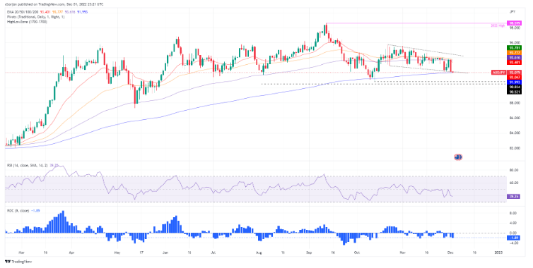 °ÄÔª/ÈÕÔªÈÕͼÏÔʾ°ÄÔª/ÈÕÔª´¦ÔÚϵøÍ¨µÀÄÚ£¬20ÈÕ¡¢50ÈÕºÍ100ÈÕÖ¸ÊýÒÆ¶¯Æ½¾ùÏß(EMAs)λÓÚÏÖ¼ÛÉÏ·½£¬Ö¤Êµ°ÄÔª/ÈÕԪϵøÇãÏò¡£ÁíÍ⣬°ÄÔª/ÈÕÔªßLËÄÊÕÓÚÉÏßLµÍλ92.14Ï·½£¬Îª»ã¼Û½øÒ»²½Ïµø´ò¿ª¿Õ¼ä¡£