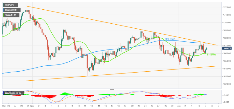 或者,英镑/日元回调跌破21-SMA支撑位166.00之前,回调前景仍不明朗。