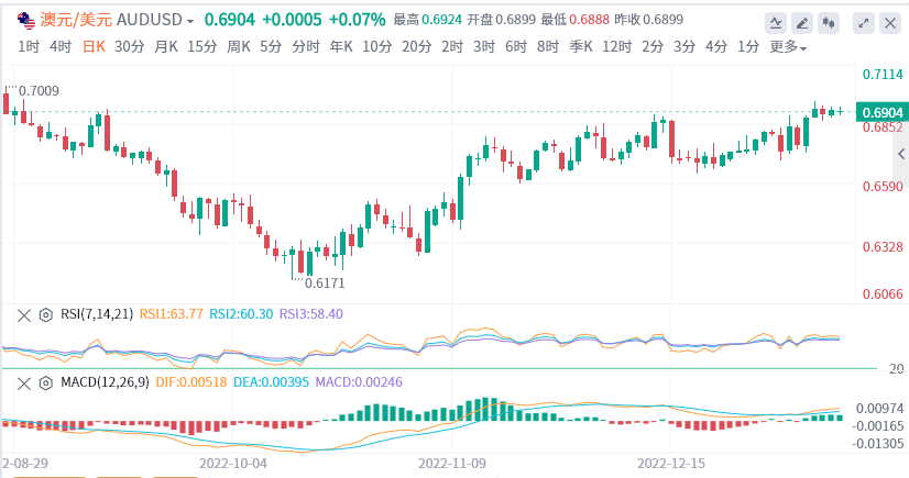 澳元可能从澳大利亚储备银行(RBA)2月份额外加息的押注中获得支持,周三较热的国内通胀数据支撑了澳元。事实上,澳大利亚统计局报告称,11月份的总体消费者价格指数(CPI)从上个月的6.9%重新加速至7.3%的年率,创下32年新高。除此以外,美元价格的低迷可能成为澳元/美元的支撑,至少在目前是这样。