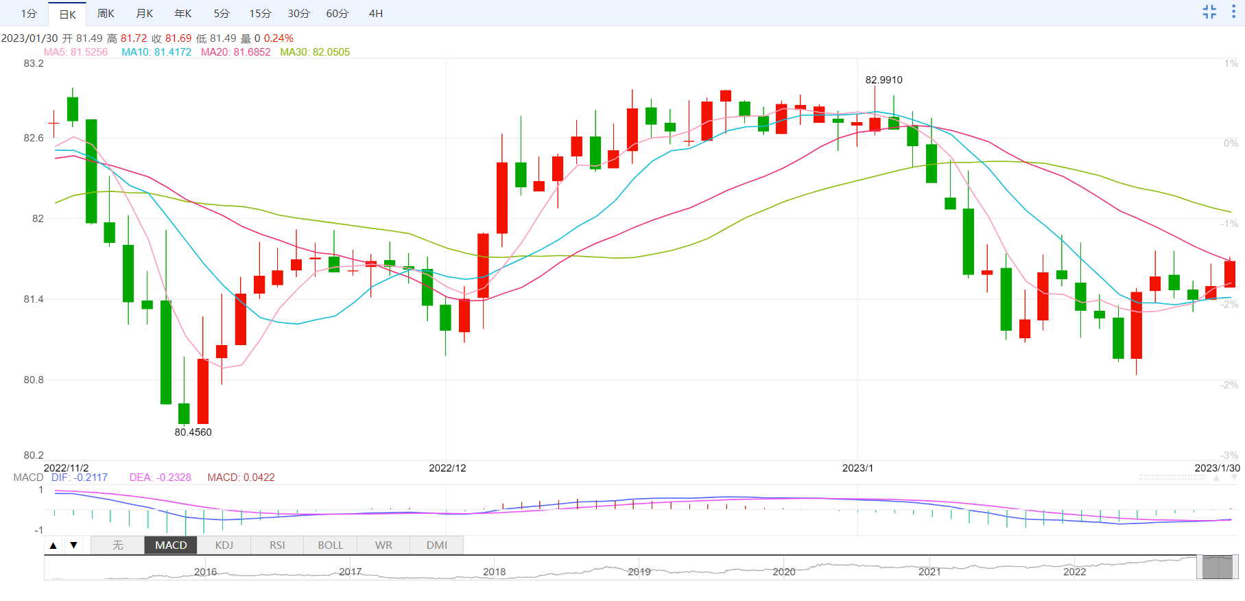 印度股市跌至三个月低点,此前阿达尼集团(Adani group)的股价淹没了市场,此前兴登堡研究公司的报告引发这家印度顶级企业的股价暴跌480亿美元。不仅股市暴跌,阿达尼领导的暴跌可能导致外国资金外流,这也令印度卢比(INR)承压。此外,最近原油价格走强,截至发稿时温和报在79.50美元附近,也有利于美元/印度卢比买家。