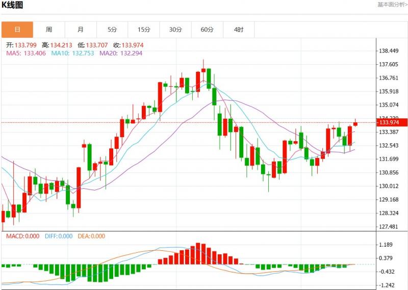 今日周一,美元兑日元报133.978,涨幅0.19%。