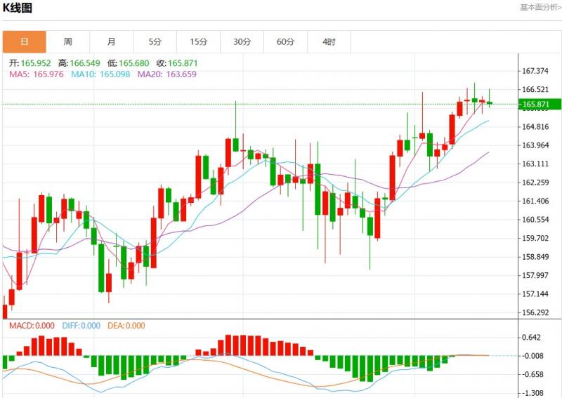 今日周一,英镑兑日元报165.861,跌幅0.06%。