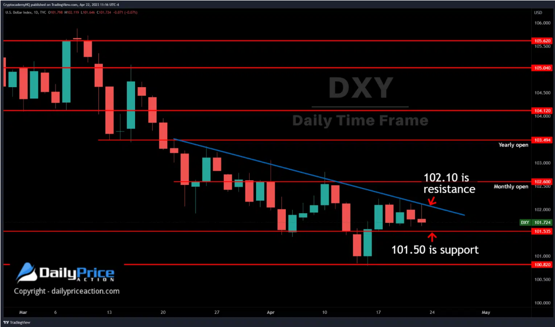 美元指数上周没有给我们太多线索,除了周一的上行。