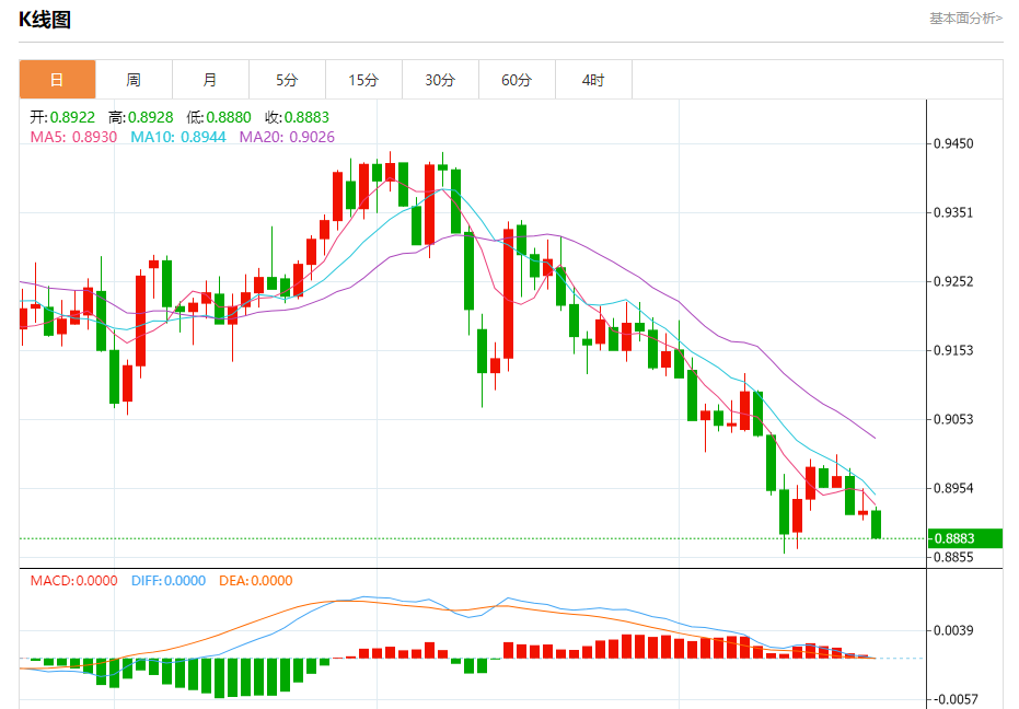 今日周一,澳元兑美元报0.6683,跌幅0.17%;美元兑加元报1.3534,涨幅0.02%;美元兑瑞郎报0.884,跌幅0.44%。