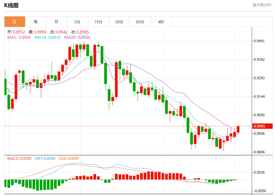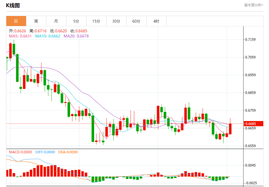 今日周二,澳元兑美元报0.6685,涨幅0.82%;美元兑加元报1.3603,涨幅0.44%;美元兑瑞郎报0.8985,涨幅0.34%。