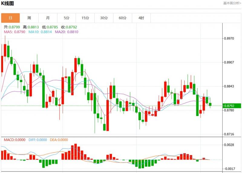 技术点评:RSI技术指标低于50。 MACD技术指标处在其信号线之下 看空。 此外,价位低于其20天及50天移动平均线 ( 分别位于 0.8804 和 0.8809 )。