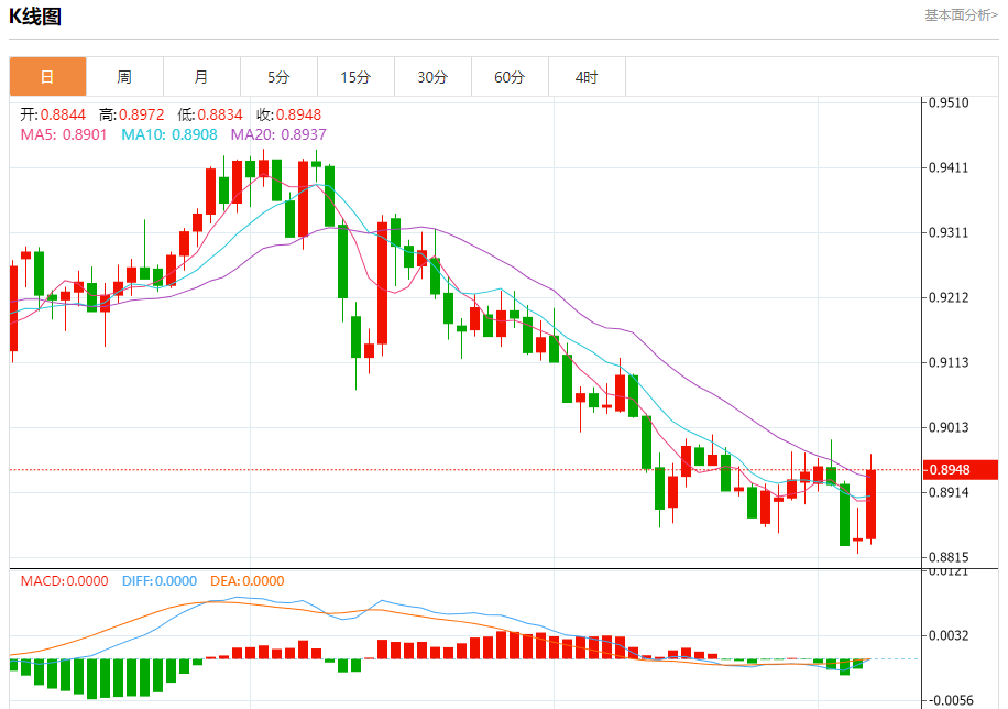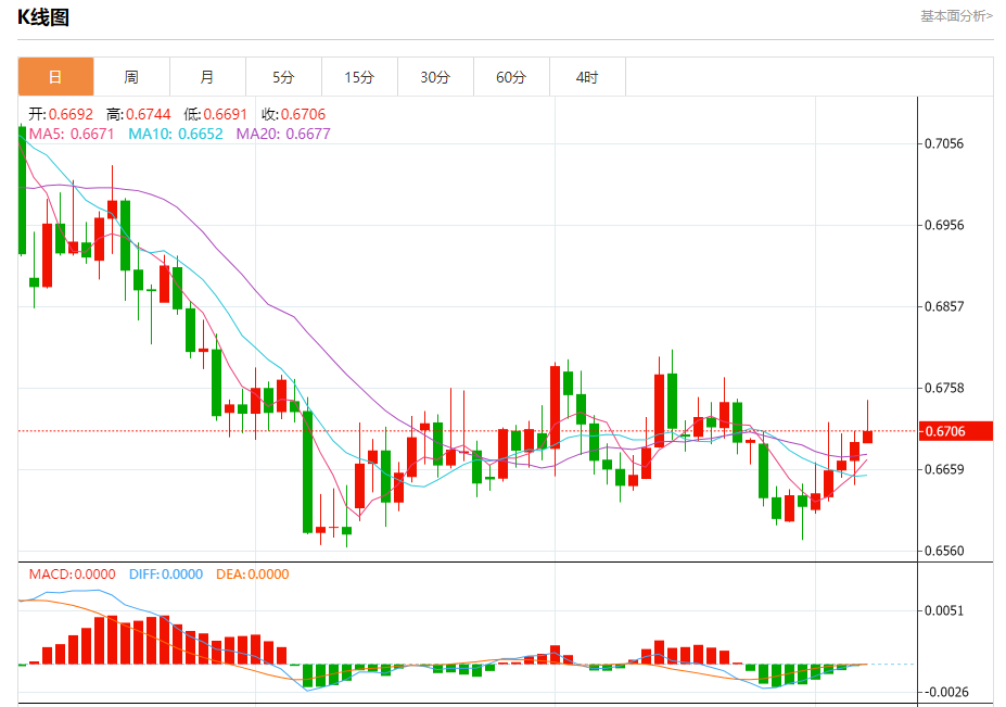 今日周五,澳元兑美元报0.6708,涨幅0.22%;美元兑加元报1.3484,跌幅0.40%;美元兑瑞郎报0.8951,涨幅1.20%。