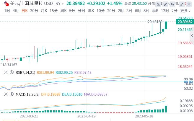 周二,在里拉持续抛售的情况下,美元/土耳其里拉向北进军的势头有增无减。现任总统雷杰普·塔伊普·埃尔多安在2023年总统选举中获胜,将其统治延长至执政的第三个十年后,这一抛售尤其加剧。