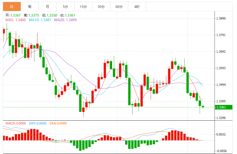 周四,美元/加元徘徊于1.3364关口下方,现交投于1.3364附近,跌幅0.04%。