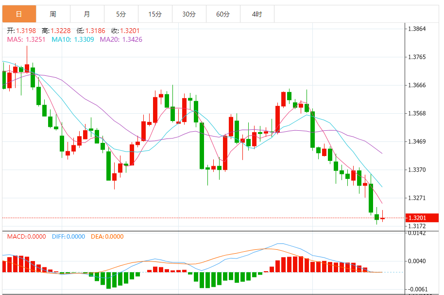 周一,美元/加元徘徊于1.3202关口下方,现交投于1.3202附近,涨幅0.03%。