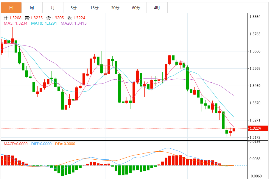 周二,美元/加元徘徊于1.3226关口下方,现交投于1.3226附近,涨幅0.12%。