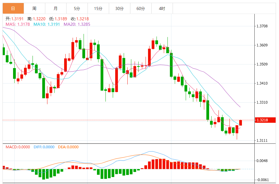 周三,美元/加元徘徊于1.3219关口下方,现交投于1.3219附近,涨幅0.20%。