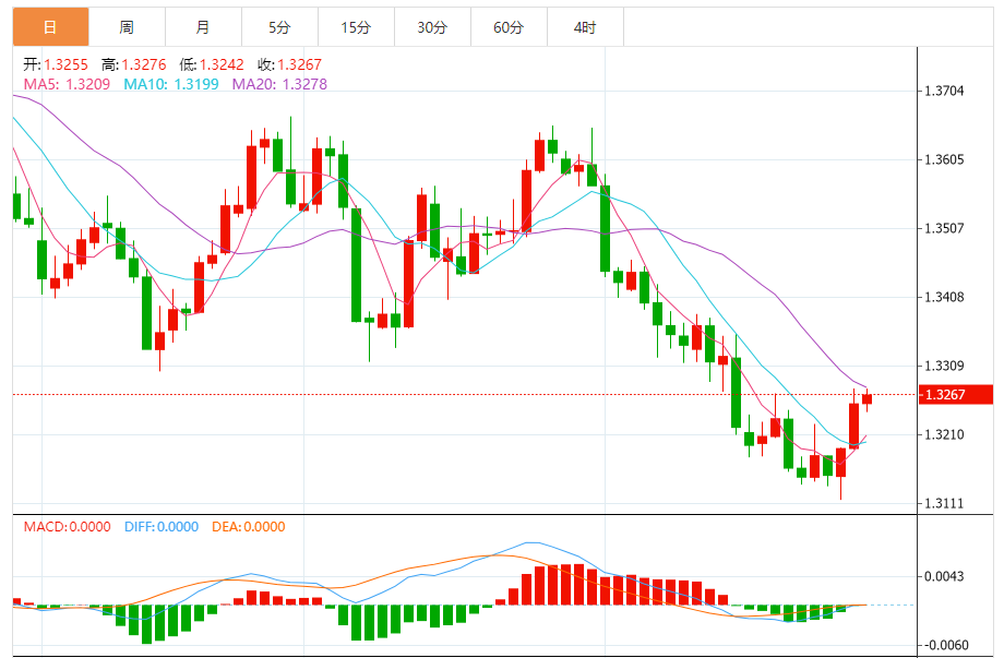 支撑位:1.3263 1.3266 1.3270