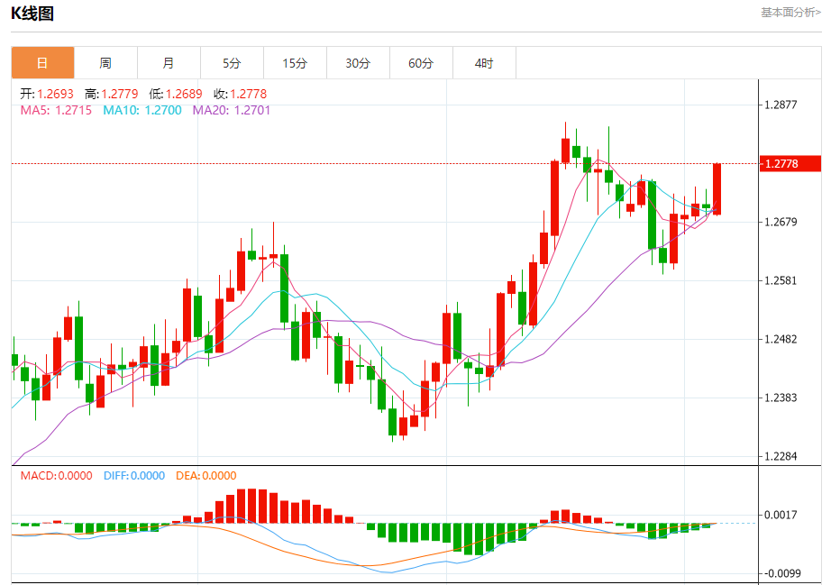 技术点评:在1.2735之上,为多头信号,向上的目标位为1.2800。