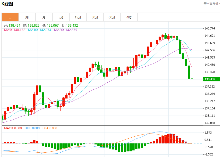 技术点评:只要139.10阻力位不被突破,向下跌破138.00位置的风险很高。