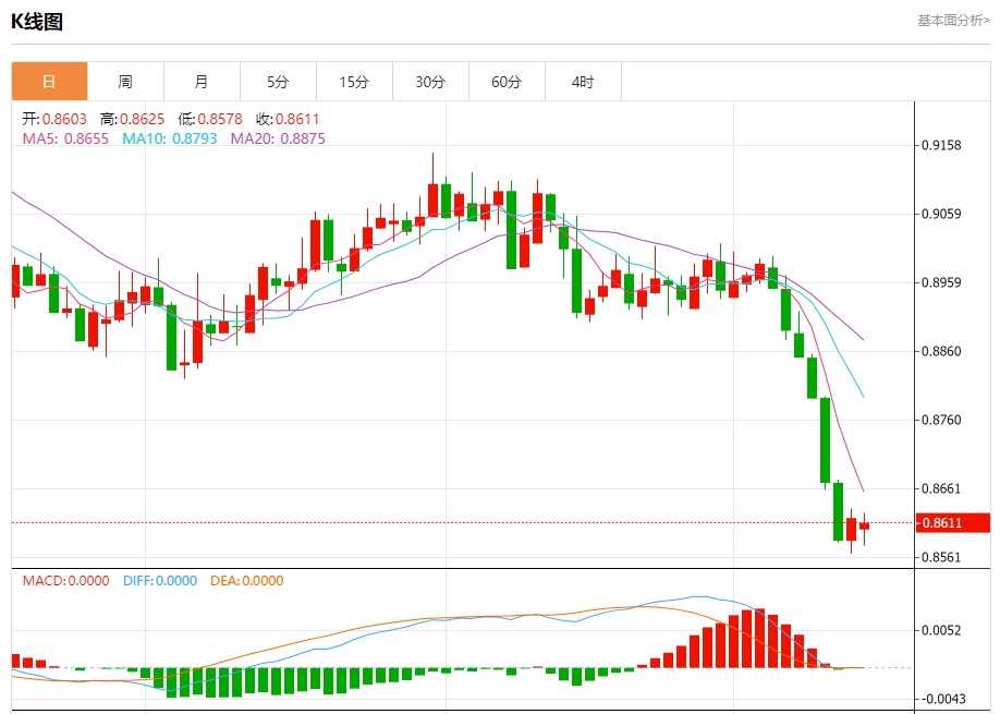 今日周一,澳元兑美元报0.6802,涨幅0.52%;美元兑加元报1.3206,跌幅0.09%;美元兑瑞郎报0.8613,跌幅0.09%。