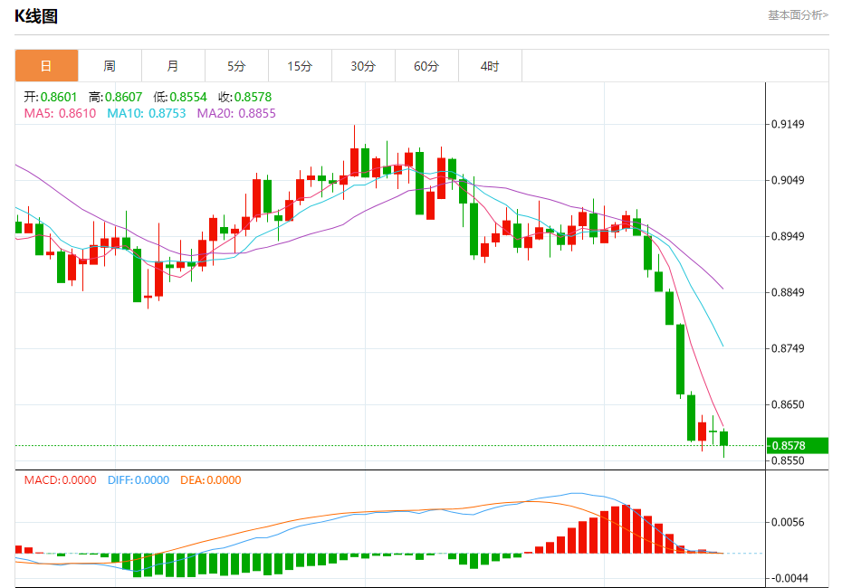 今日周二,澳元兑美元报0.6801,跌幅0.23%;美元兑加元报1.3224,涨幅0.18%;美元兑瑞郎报0.8580,跌幅0.28%。