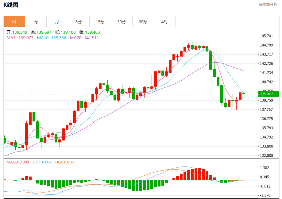 今日周四,欧元兑美元报1.1211,涨幅0.11%;英镑兑美元报1.2894,跌幅0.35%;美元兑日元报139.444,跌幅0.13%。