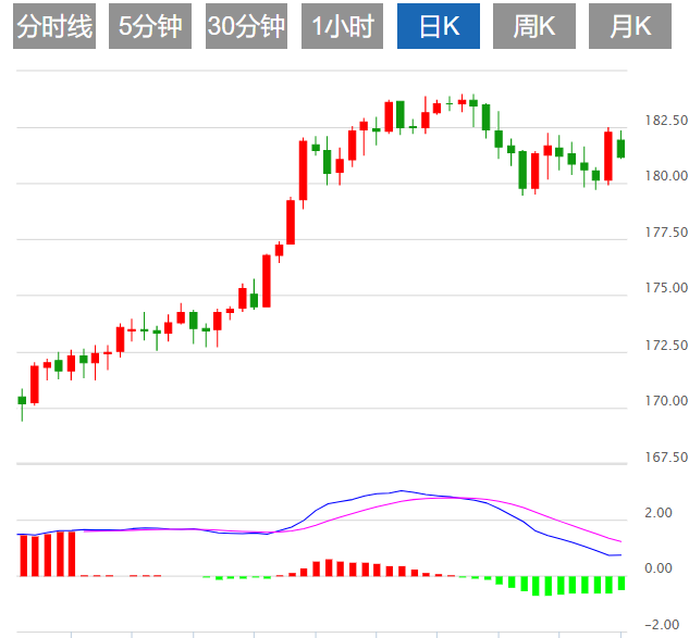 反之,100简单移动均线 和月线高点(分别位于 182.00 和 184.00 附近)可能会成为阻力,然后将上行测试 181.25 。如果英镑/日元在 184.00 之后保持坚挺,那么楔形突破的理论目标 185.75 附近将成为关注焦点。