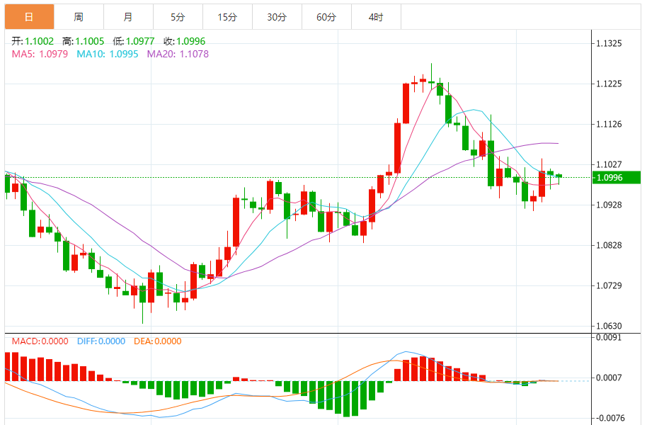 周二,欧元/美元徘徊于1.0999关口下方,现交投于1.0999附近,跌幅0.04%。