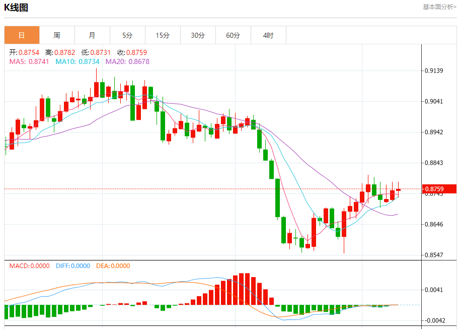 支撑位:0.8745 0.8725 0.8710