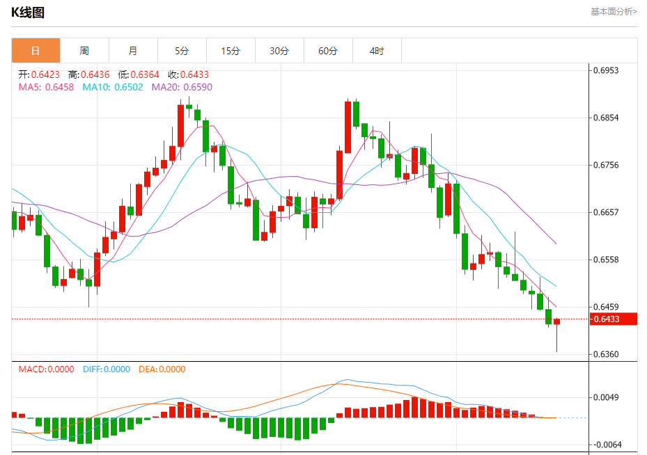 今日周四,澳元兑美元报0.6434,涨幅0.15%;美元兑加元报1.3507,跌幅0.19%;美元兑瑞郎报0.8776,跌幅0.27%。