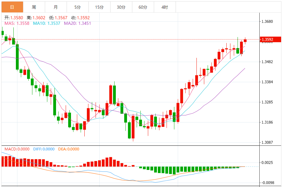 周五,美元/加元徘徊于1.3594关口下方,现交投于1.3594附近,涨幅0.09%。