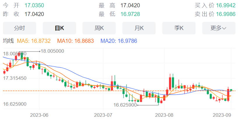 即便如此,100简单移动均线 和 200简单移动均线汇合于 16.94-93 附近似乎成为强阻力。