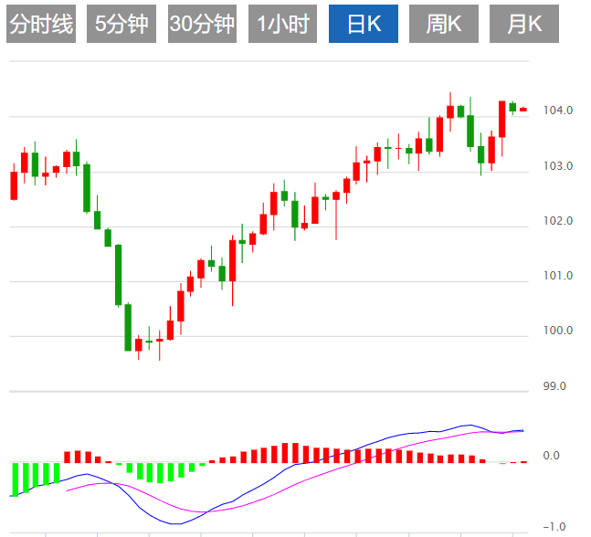 技术上,尽管美元指数(DXY)仍有希望跌穿21日均线支撑位103.45,但5月下旬以来的下行阻力线(截至记者发稿时已接近104.45)构成在短线上行阻力。