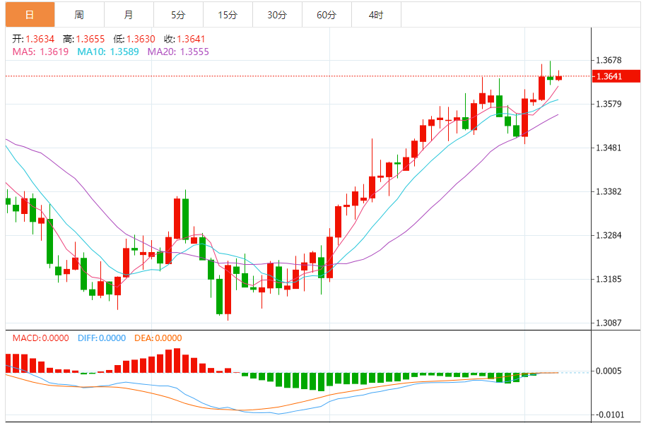 周四,美元/加元徘徊于1.3642关口下方,现交投于1.3642附近,涨幅0.04%。