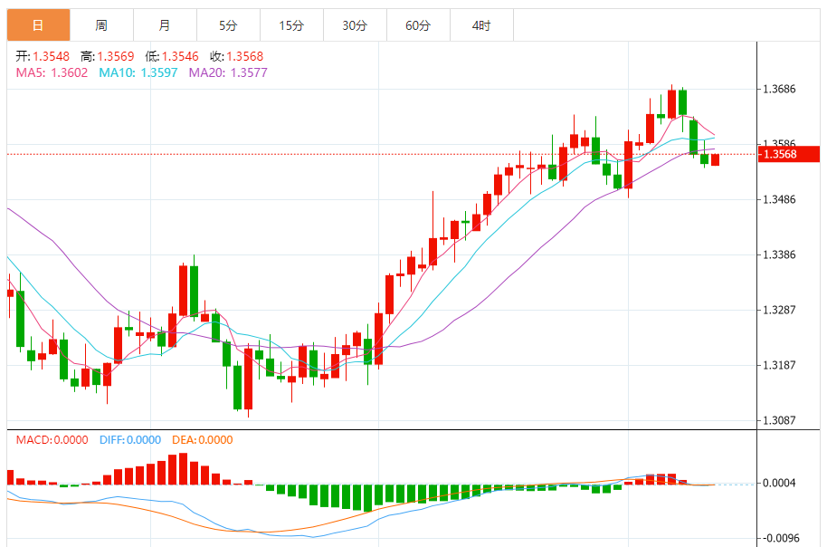 周三,美元/加元徘徊于1.3570关口下方,现交投于1.3570附近,涨幅0.12%。