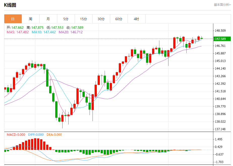 今日周一,欧元兑美元报1.0664,涨幅0.01%;英镑兑美元报1.2384,涨幅0.00%;美元兑日元报147.593,跌幅0.17%。
