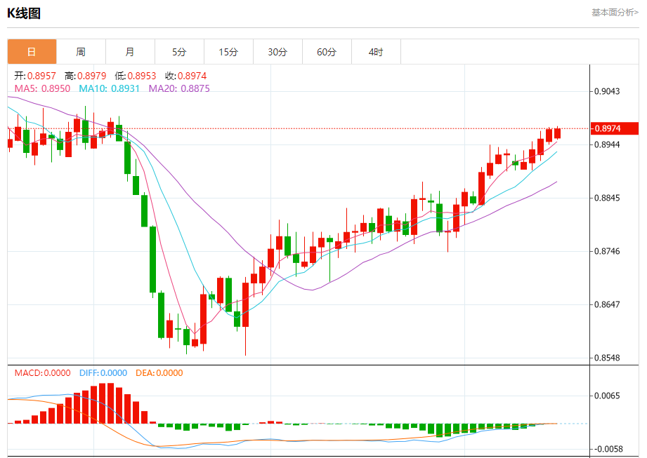 今日周一,澳元兑美元报0.6433,涨幅0.03%;美元兑加元报1.3489,跌幅0.27%;美元兑瑞郎报0.8976,涨幅0.02%。