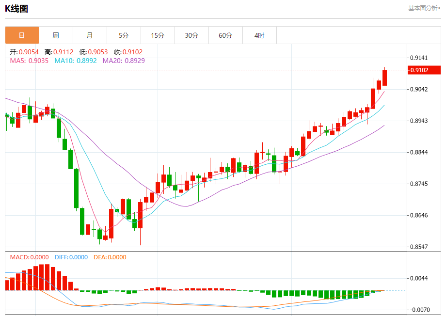 支撑位:0.9065 0.9045 0.9025