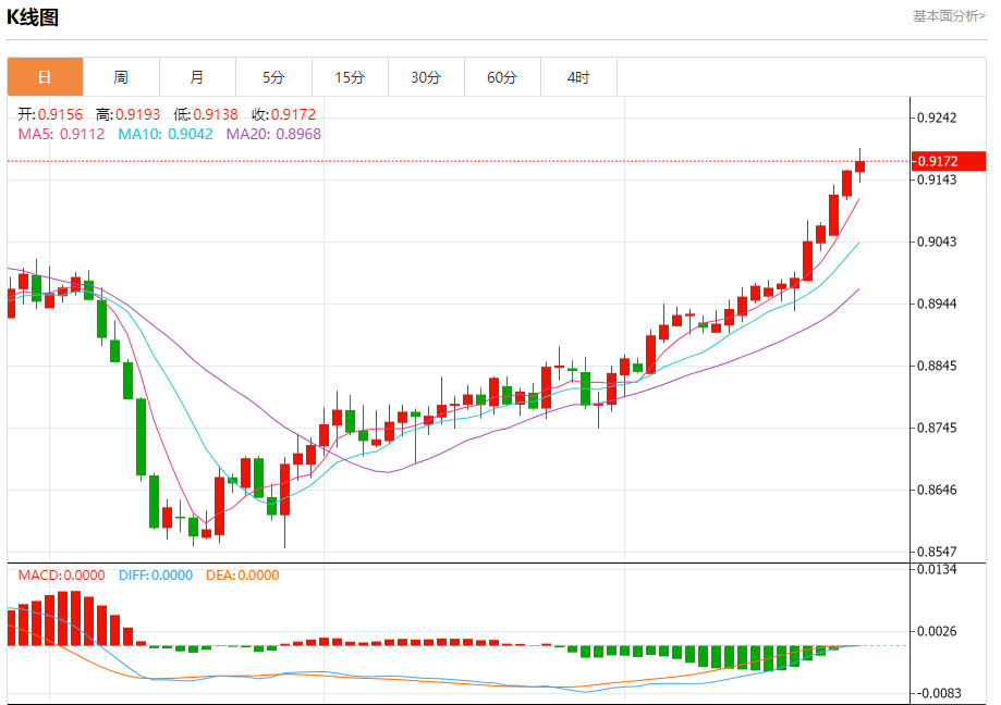 支撑位:0.9150 0.9135 0.9115