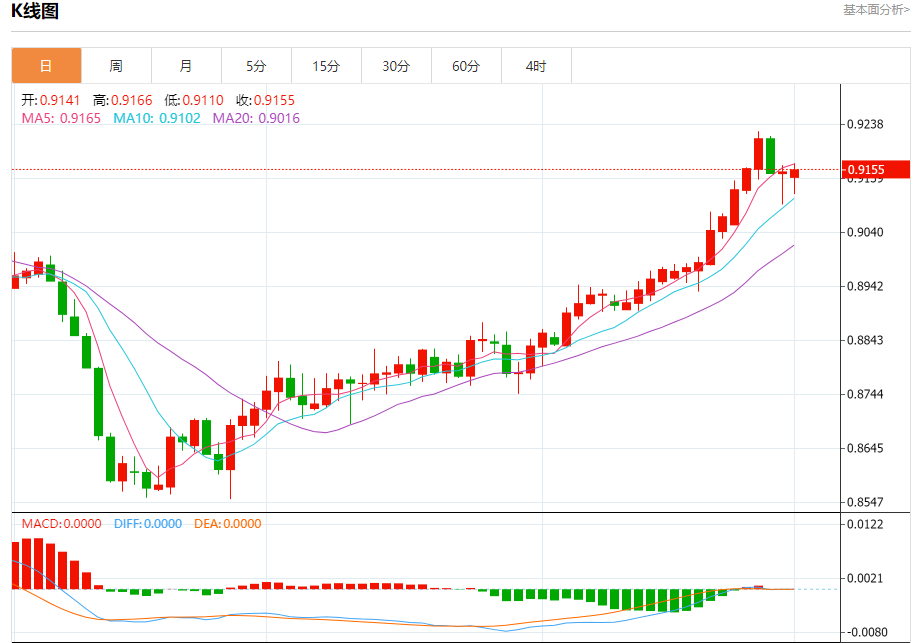 支撑位:0.9110 0.9095 0.9080