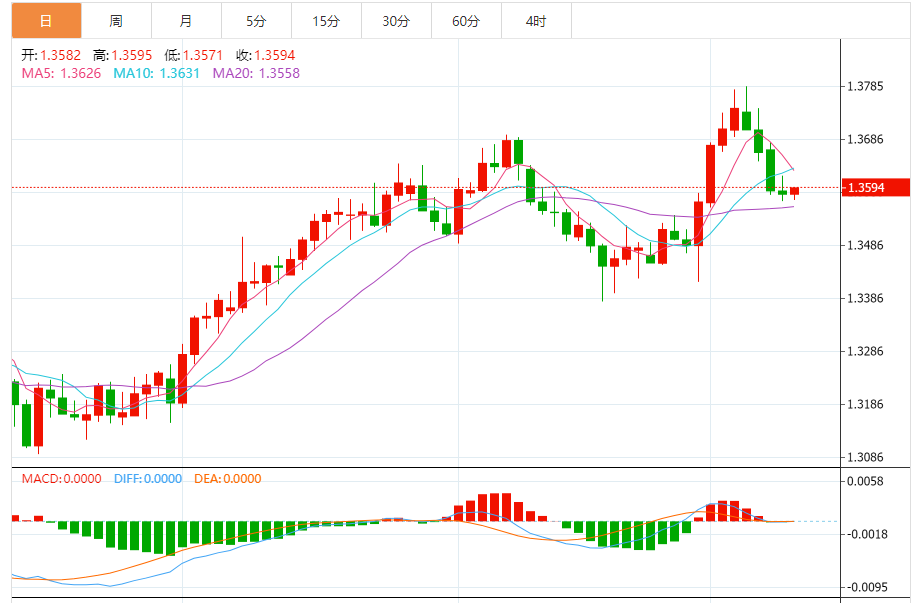 周三,美元/加元徘徊于1.3596关口下方,现交投于1.3596附近,涨幅0.09%。