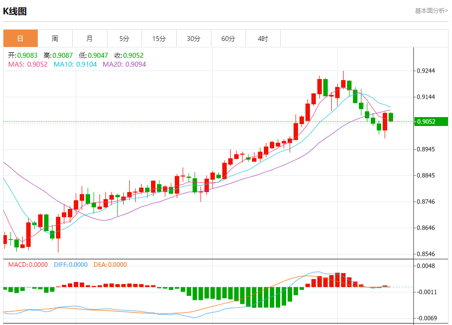 今日周五,澳元兑美元报0.6326,涨幅0.18%;美元兑加元报1.3667,跌幅0.18%;美元兑瑞郎报0.9054,跌幅0.34%。