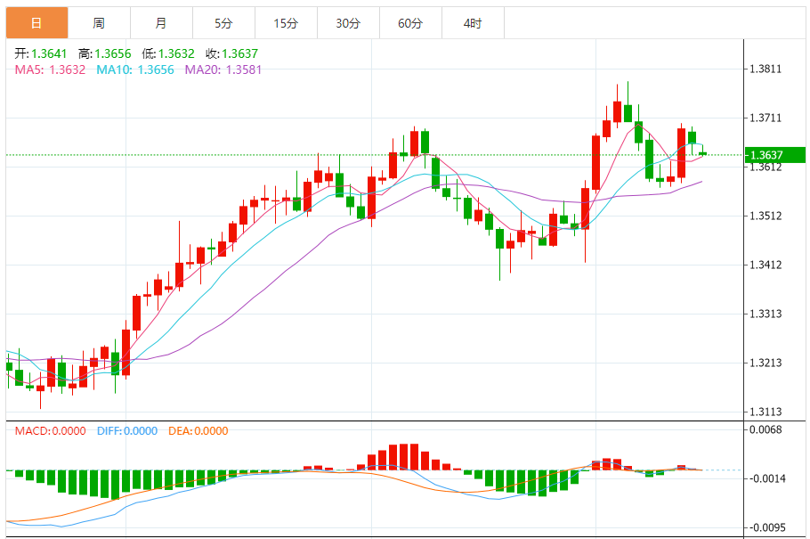 周一,美元/加元徘徊于1.3639关口下方,现交投于1.3639附近,跌幅0.16%。