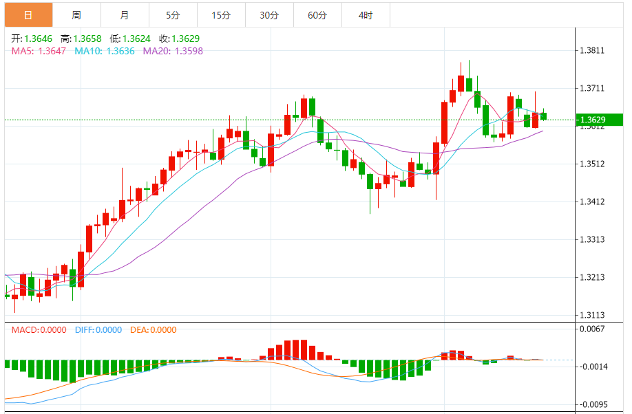 周三,美元/加元徘徊于1.3631关口下方,现交投于1.3631附近,跌幅0.13%。
