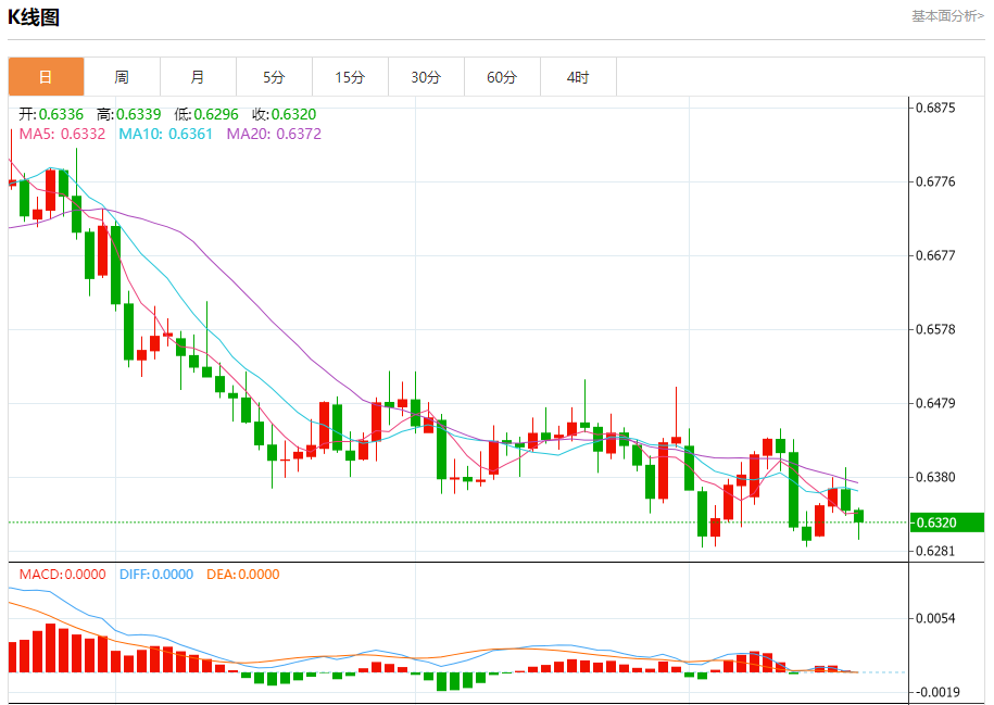 今日周四,澳元兑美元报0.6321,跌幅0.26%;美元兑加元报1.3732,涨幅0.12%;美元兑瑞郎报0.8972,跌幅0.20%。