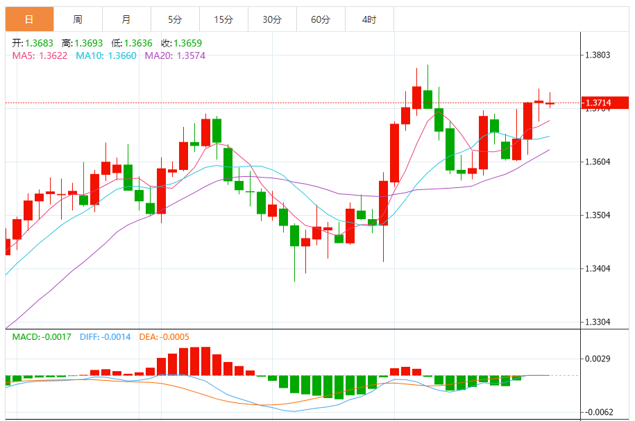 周五,美元/加元徘徊于1.3720关口下方,现交投于1.3720附近,涨幅0.00%。