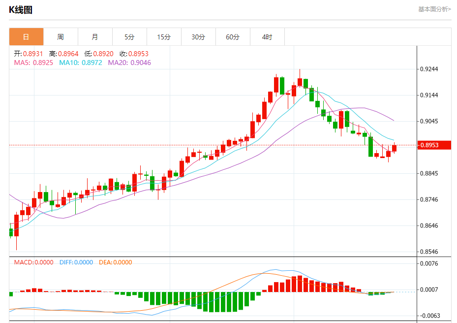 今日周三,澳元兑美元报0.6341,跌幅0.20%;美元兑加元报1.3764,涨幅0.16%;美元兑瑞郎报0.8955,涨幅0.25%。