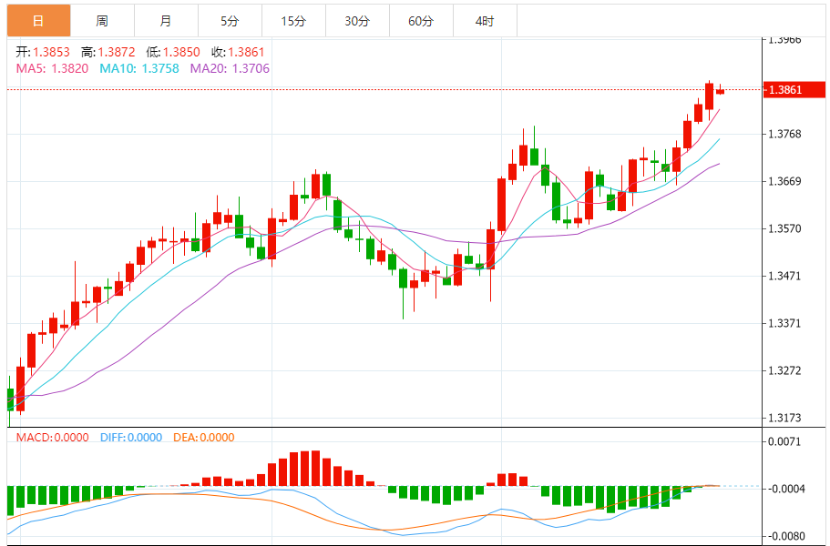 周一,美元/加元徘徊于1.3862关口下方,现交投于1.3862附近,跌幅0.10%。