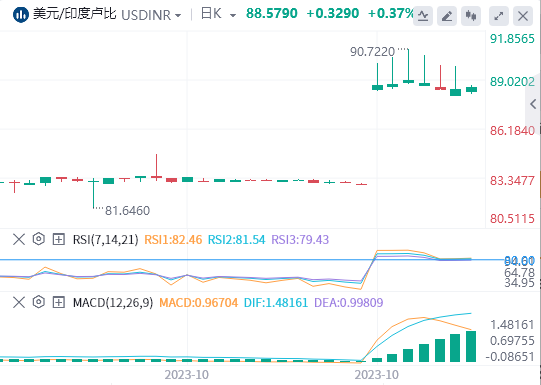 印度卢比当天出现小幅回升。自9月份以来,美元/印度卢比对的交易区间为83.00–83.35。与此同时,美元/印度卢比保持看涨立场,因为该对保持在日图上关键的100天和200天指数移动平均线(EMA)上方。
